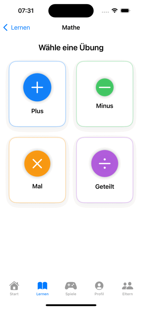 Rechnen & Zahlenverständnis:** Spielerische Mathe-Aufgaben fördern das Verständnis für Zahlen, Grundrechenarten und logisches Denken.